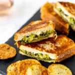 Jam-packed with crispy broccoli, herby pesto and ooey gooey mozzarella cheese, this Roasted Broccoli Grilled Cheese with Pesto will leave you feeling happy and full!