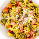 I always make sure to have a batch of my Homemade Basil Pesto in the freezer so it's on hand for tossing to sauces, spreading on sandwiches and so many other uses! It's what I always use in this Pesto Tortellini Toss because it's fresh and delicious.